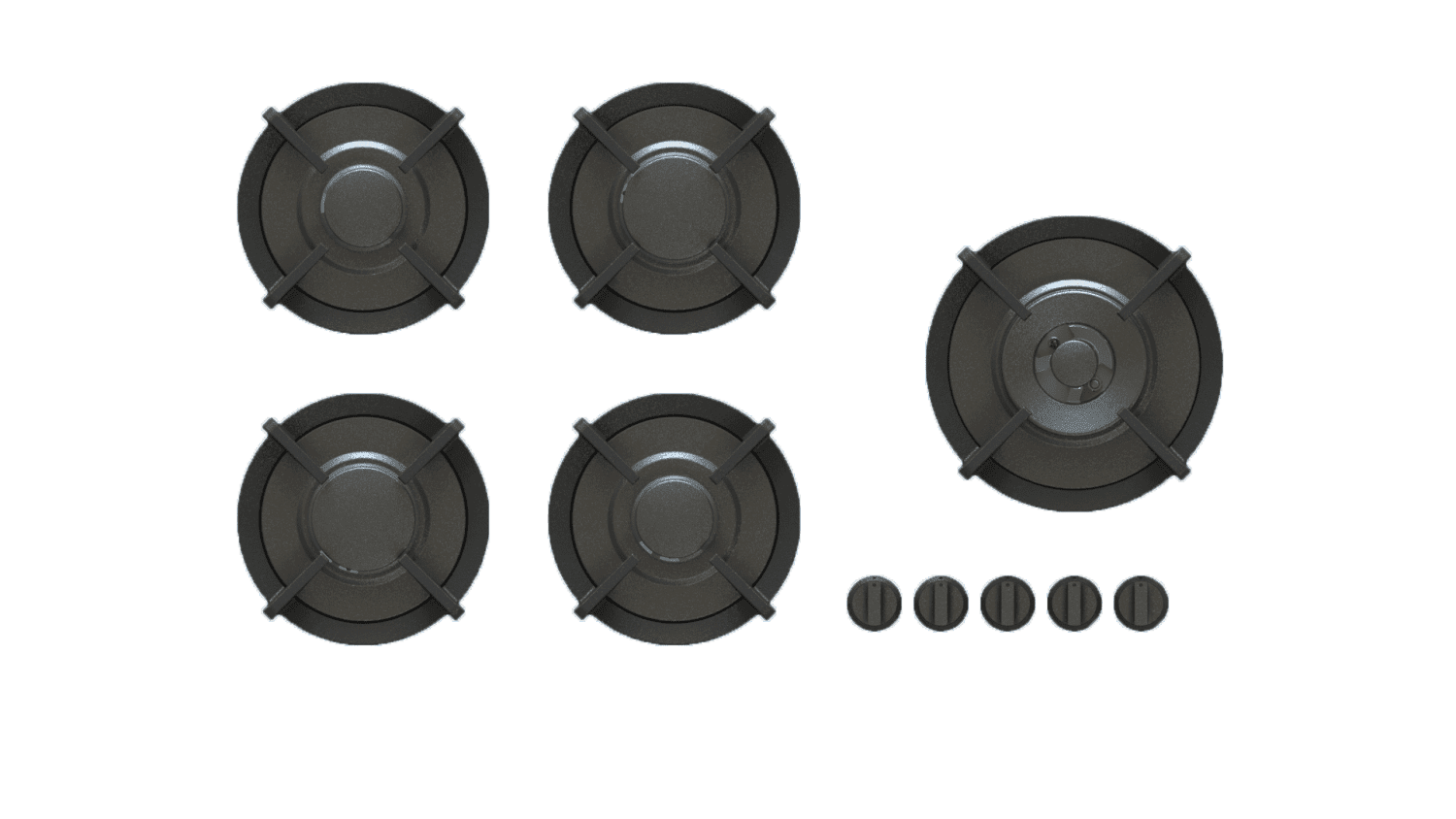 PITT Cooking, Ebeko Professional (Brass) integrated 5-burner configuration.