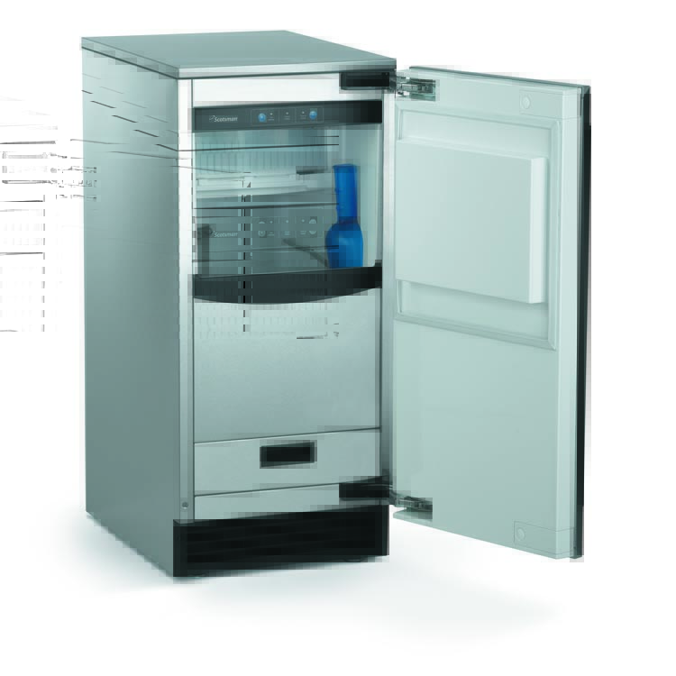 Scotsman, Brilliance Clear Ice Maker with Gravity Drain. Built-in or freestanding. Requires custom front panel (KDFS stainless steel door panel kit pictured – sold separately)