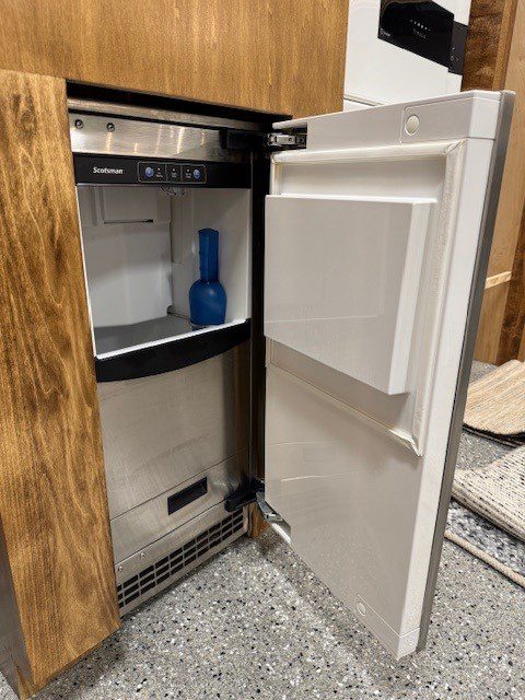 Scotsman, Brilliance Nugget Ice Machine with sump pump for use when floor drain is not in the immediate vicinity. Built-in or freestanding, reversible door hinge, interior bin light, digital controls, outdoor-use approved, finished stainless steel front (KDFS) included. Unit will be sold as pictured, without price adjustments for removing KDFS door front.