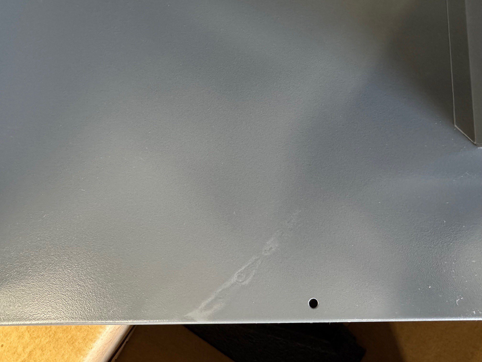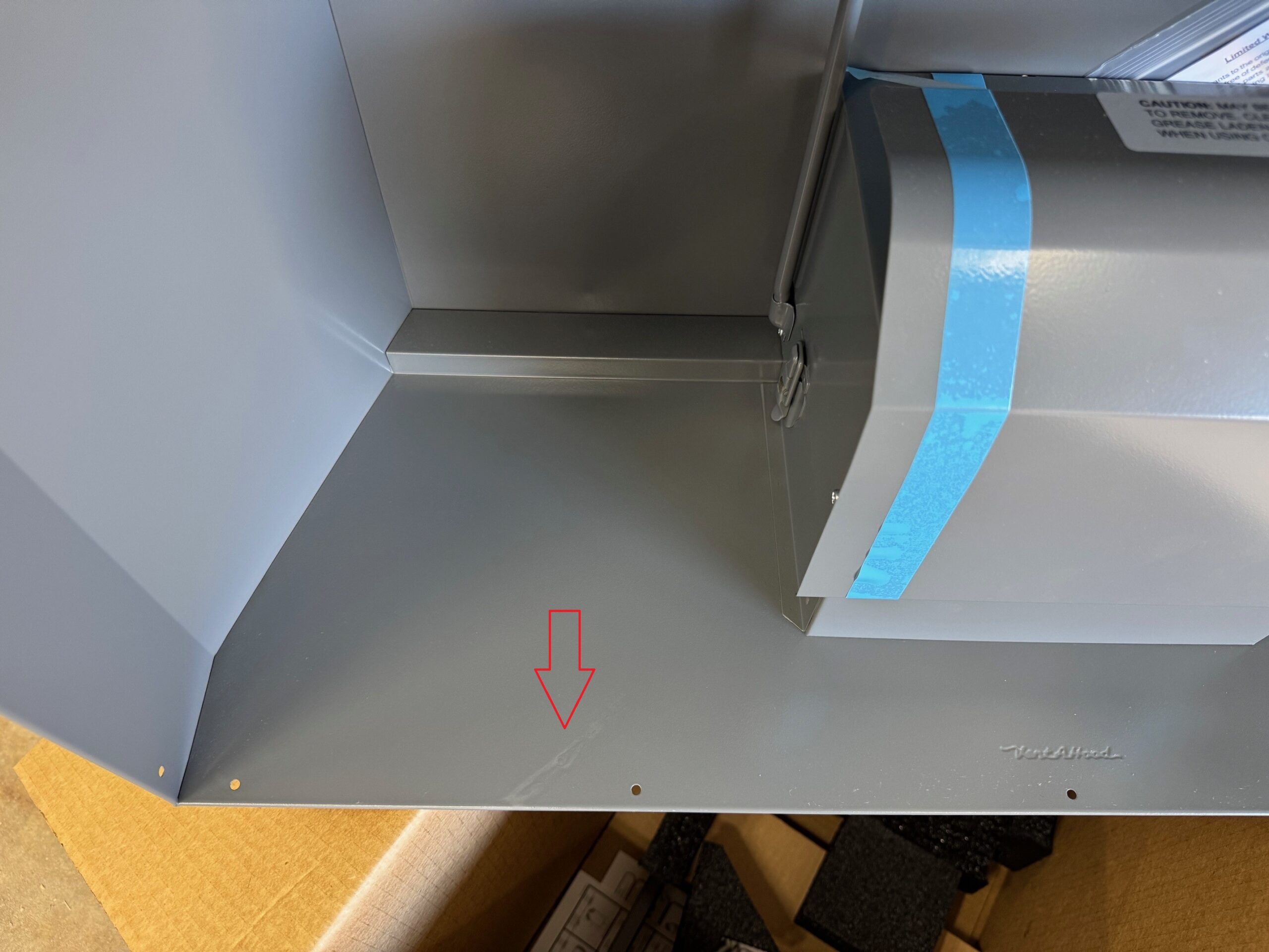 Discounted due to a paint irregularity on the back panel, toward the bottom edge, extending vertically 3-4 inches. Some of the flaw will be concealed by the included trim kit once installed.