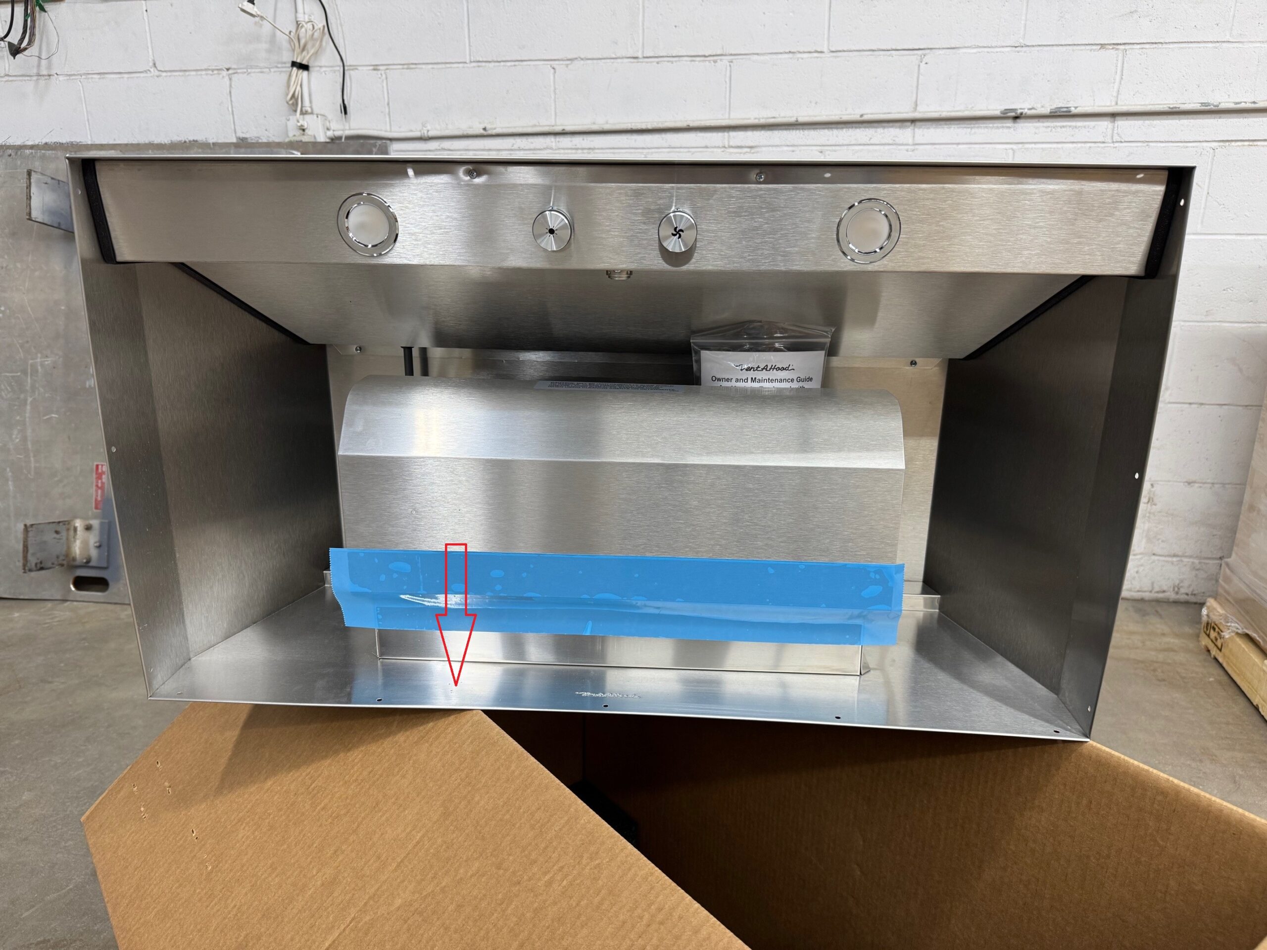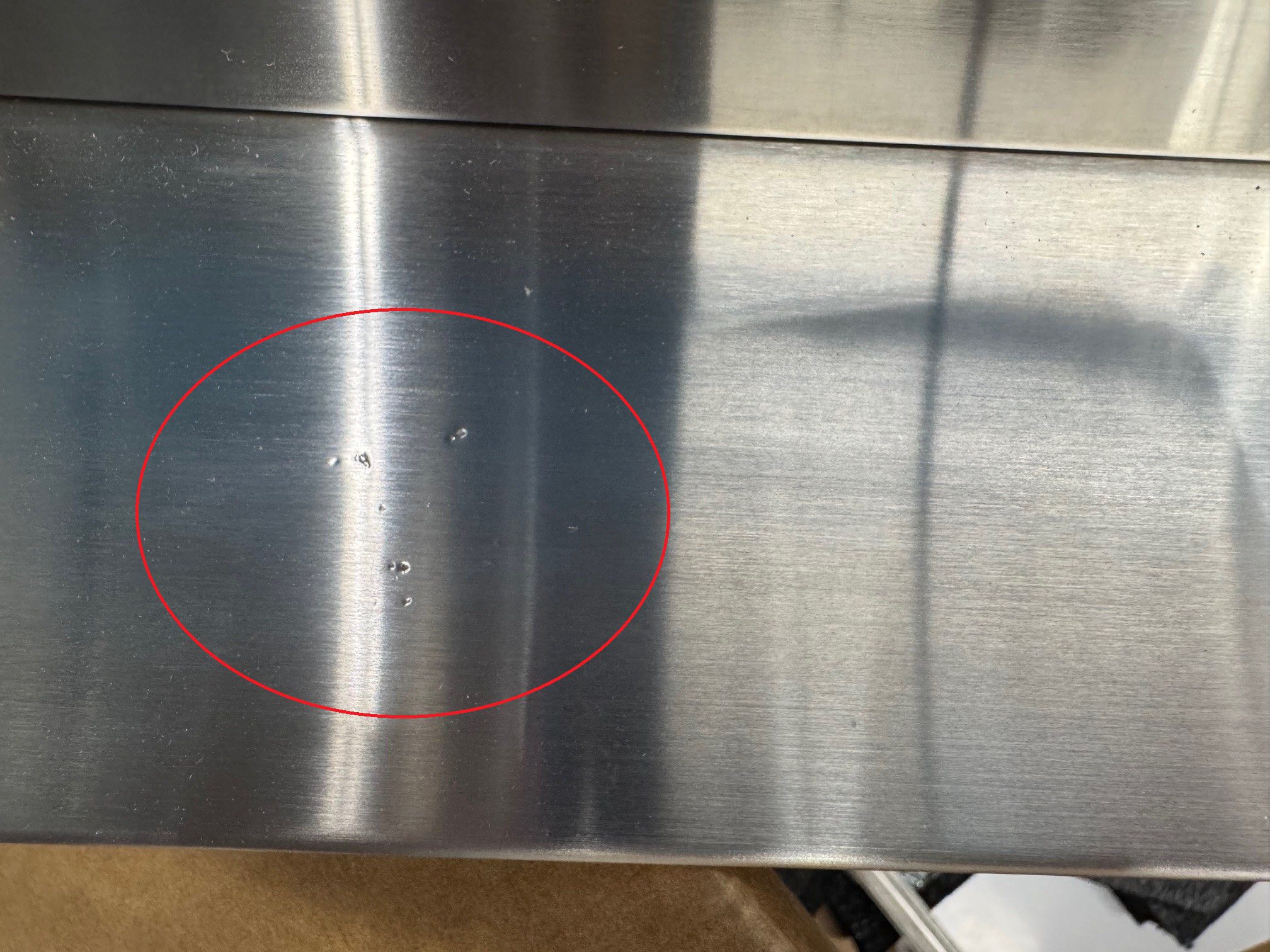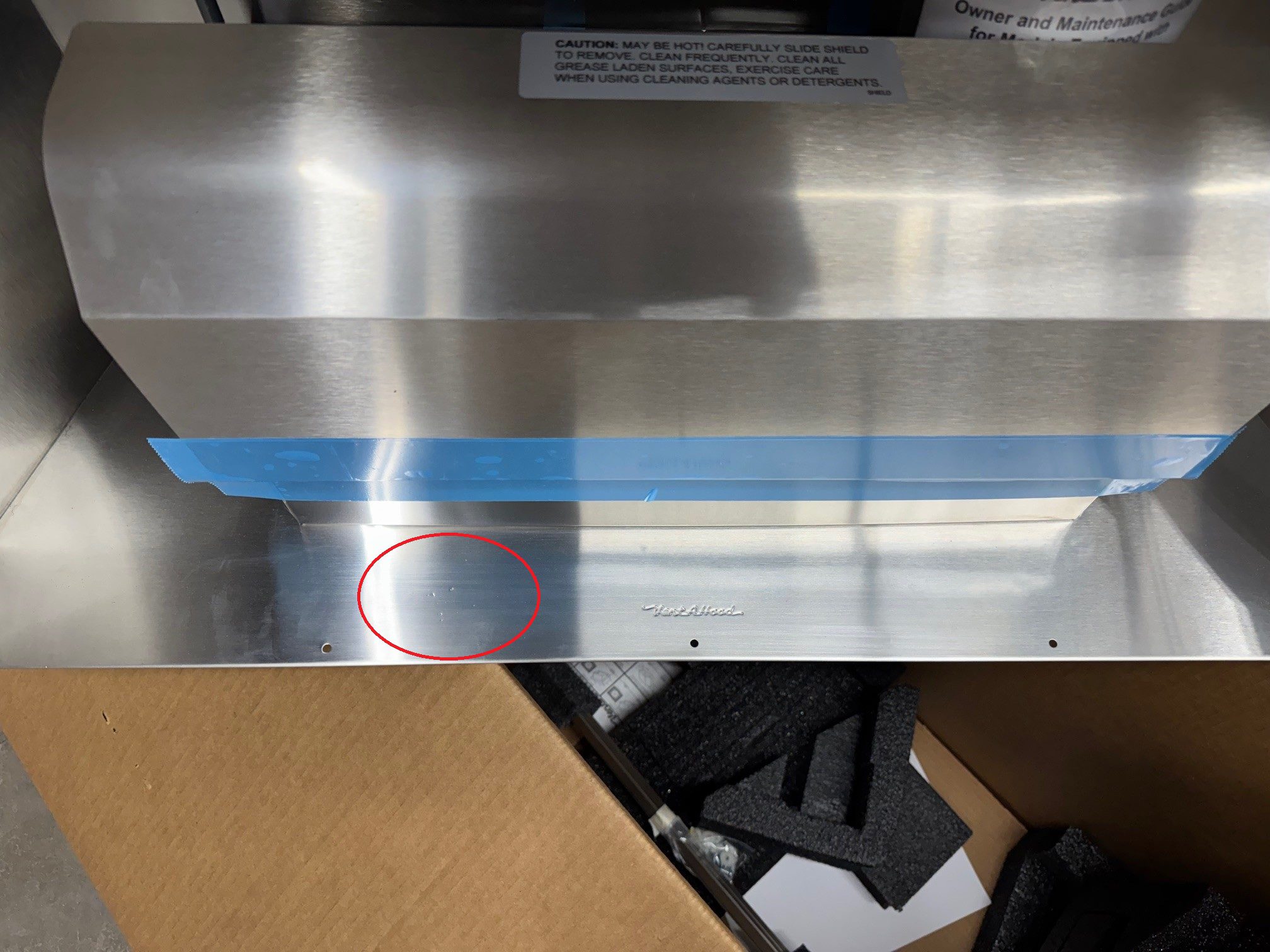 Discounted due to very small imperfections in the stainless steel, on the back panel just below the blowers. They are a group of tiny pen-tip pits in the stainless steel. See photos for more.